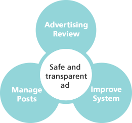 We are building a framework for providing more useful information to users by establishing Advertising Review Department and adopting advertising review system which screens advertising contents based on the guidelines prior to and after publishing.